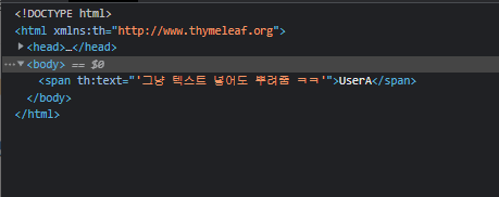 <span th:text="${userName}">UserA</span> //여기서 나옴.